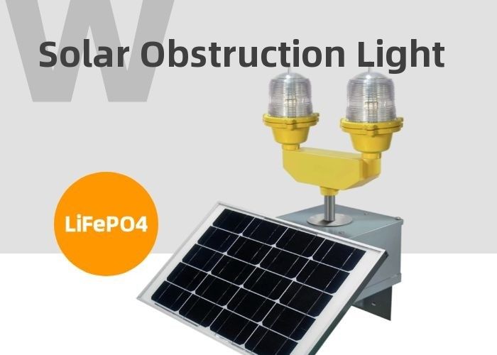 Dual Medium Intensity LED Solar Tower Obstruction Light makes it a self-contained and almost hassle-free lighting unit. The lighting system consists of three parts: lamp, battery box and solar panel. When the lights and solar panels are attached to the battery box, the entire system can be mounted on a tower. Both vertical and horizontal installations are available. Equipped with a 26Ah VRLA rechargeable battery, it can power the light for up to 7 days in cloudy and rainy conditions. 26Ah VRLA batteries are easy to find almost anywhere.